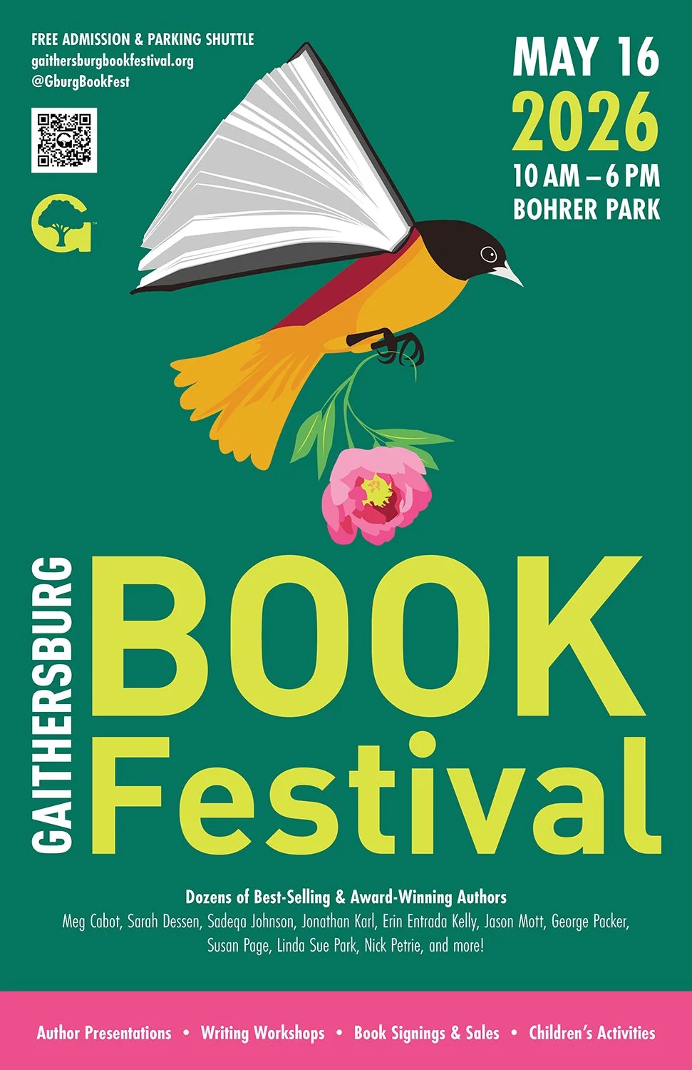 Gaithersburg Book Festival design with custom graphic illustrations to highlighting the history and symbols of Gaithersburg.
